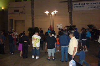 GLORY TO GOD!! What a great night! Lately Burbank Media Center has been a really exciting place to go witnessing. But this night it was AMAZING. All I have to say is DEAN was "the man"! The Lord drew to him THE biggest crowd I have ever seen at Burbank yet. Mike had set up the heckler mic and we had even prayed for a big crowd and good heckler... the Lord answered. Dean had started with a little trivia for $ but it wasn't until he got the guy in the blue shirt asking him questions before you knew it there must have been about 40 people listening. It was great. Dean handled himself and the heckler well, had good answers and a humble spirit. God is good!