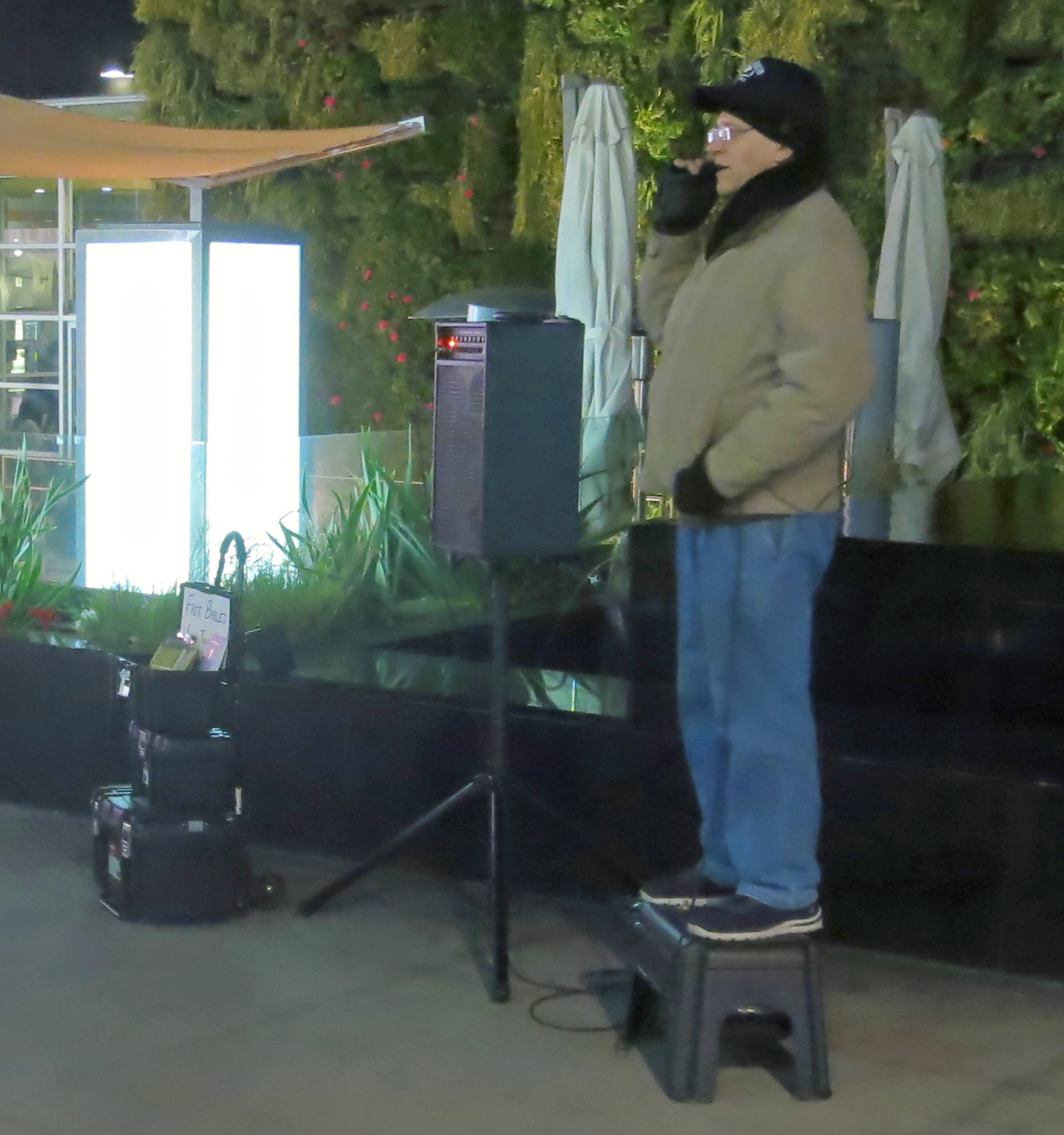 We were greeted by the musical stylings of the violin lady. Whereas this performer is usually positioned across the street, we forged ahead to establish a base of operation in our usual spot by the stop-light.